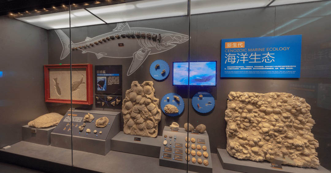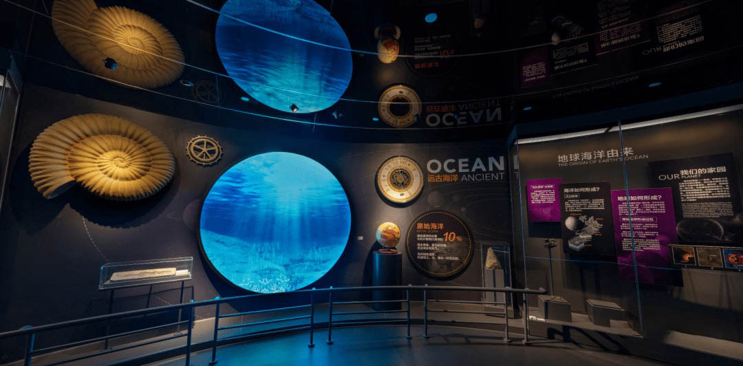 古代海洋展廳包括“洪荒海洋”-前寒武紀海洋,生命-古生代海洋,龍海滄桑-中生代海洋,新生海洋-新生代海洋四個部分內容,是目前國內較全、面積最大的海洋專題展廳。