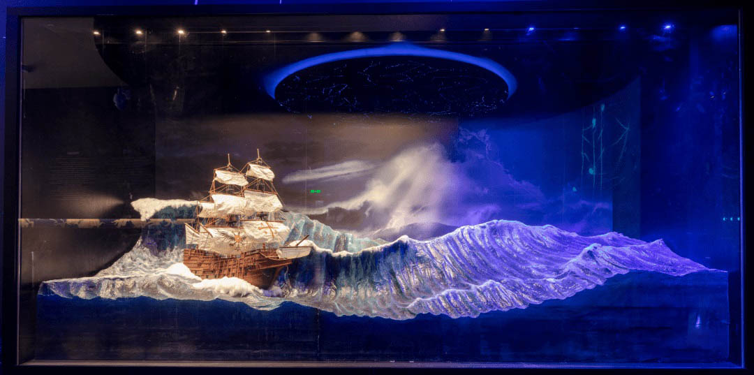 中華海洋人文展區(qū)設有中華海洋文明第一章、第二章、海洋強國及海上對外交流展區(qū)。