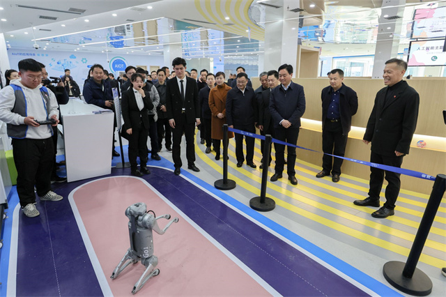 開館儀式后,顧興旺一行前往館內(nèi)創(chuàng)造工坊、科學(xué)實(shí)驗(yàn)室、MR全息體驗(yàn)館、無人機(jī)主題空間等區(qū)域參觀。他強(qiáng)調(diào),“一館一基地”的順利投入使用,將為市民兒童展示先進(jìn)的前沿科技成果,讓市民兒童了解現(xiàn)代科技的發(fā)展方向和趨勢。場館和有關(guān)部門要抓好安全運(yùn)營,針對不同年齡段兒童開展豐富多彩的科普教育,同時要狠抓兒童動手能力、創(chuàng)造能力鍛煉,進(jìn)一步激發(fā)培養(yǎng)青少年的創(chuàng)新思維、創(chuàng)新精神和創(chuàng)新能力,更好服務(wù)市民生活,著力將“一館一基地”打造成為全區(qū)、全市新的城市品牌,助力城市高質(zhì)量發(fā)展。