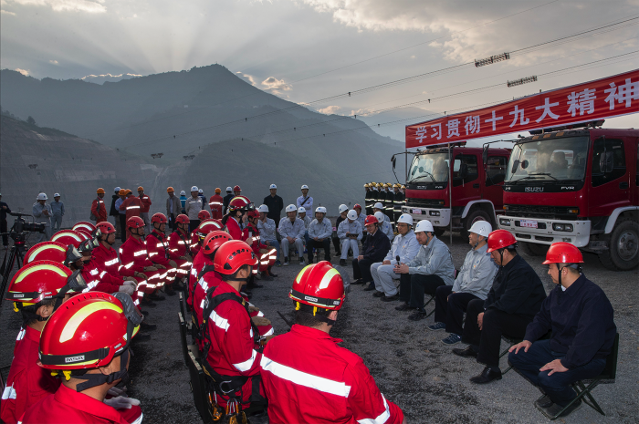 由三峽基地發(fā)展公司組建的白鶴灘應(yīng)急救援隊(duì),是白鶴灘工程應(yīng)對(duì)安全風(fēng)險(xiǎn)和應(yīng)急救援的重要力量。盧純來到白鶴灘應(yīng)急救援隊(duì)班組,與大家一起交流,并向他們贈(zèng)送《中國共產(chǎn)黨章程》和《黨的十九大報(bào)告輔導(dǎo)讀本》。