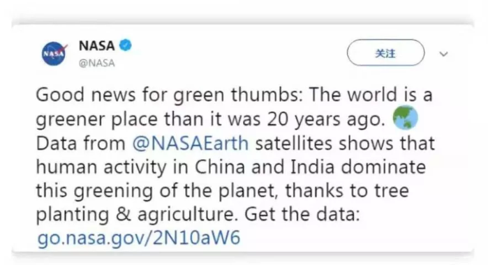 你還記得嗎,不久前美國(guó)國(guó)家航空航天局(NASA)在一條推特中欣喜表示,過(guò)去20年中,世界變得越來(lái)越“綠色”了。
