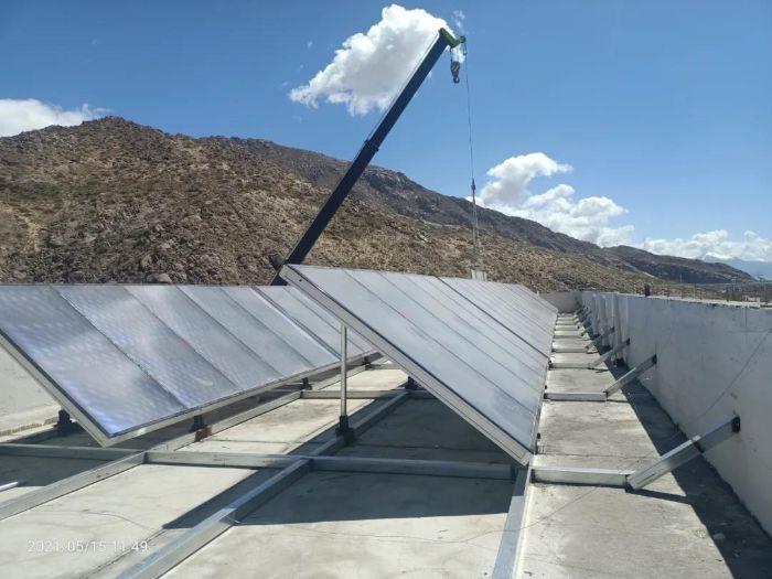 三峽電商積極參加西藏援建項(xiàng)目,圖為其組織供應(yīng)的電暖系統(tǒng)設(shè)備正在吊裝。