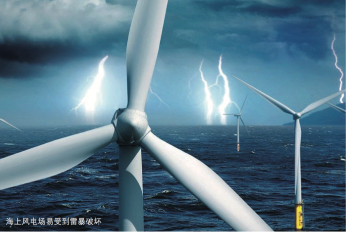 近海地區(qū)強(qiáng)對(duì)流天氣多發(fā)、空氣濕潤(rùn),容易形成雷暴。海上風(fēng)力機(jī)矗立在平坦的海面上,同時(shí)水氣和鹽霧又會(huì)在葉片表面聚集,使得風(fēng)力機(jī)易于遭到雷電襲擊。最可能被雷擊損害的部件是位于風(fēng)力機(jī)最高點(diǎn)的葉片;風(fēng)力機(jī)內(nèi)部控制系統(tǒng)被雷電流干擾,會(huì)導(dǎo)致風(fēng)力機(jī)不能動(dòng)作或做出錯(cuò)誤動(dòng)作;雷電流還會(huì)在機(jī)艙內(nèi)部金屬間隙產(chǎn)生火花,引起火災(zāi)和爆炸。