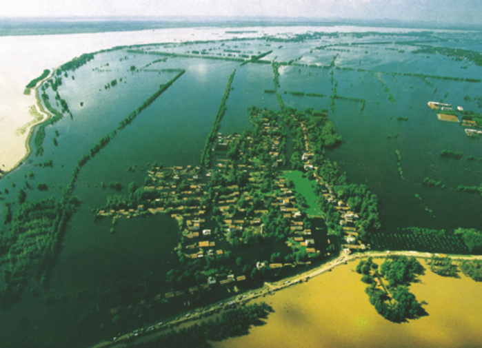 1998年長(zhǎng)江發(fā)生洪災(zāi)時(shí)被水淹沒(méi)的嘉魚縣鄉(xiāng)村簰洲灣