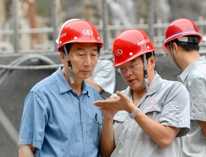 中國工程院院士、原三峽總公司總經(jīng)理陸佑楣(左)和汪志林在溪洛渡建設(shè)現(xiàn)場討論。