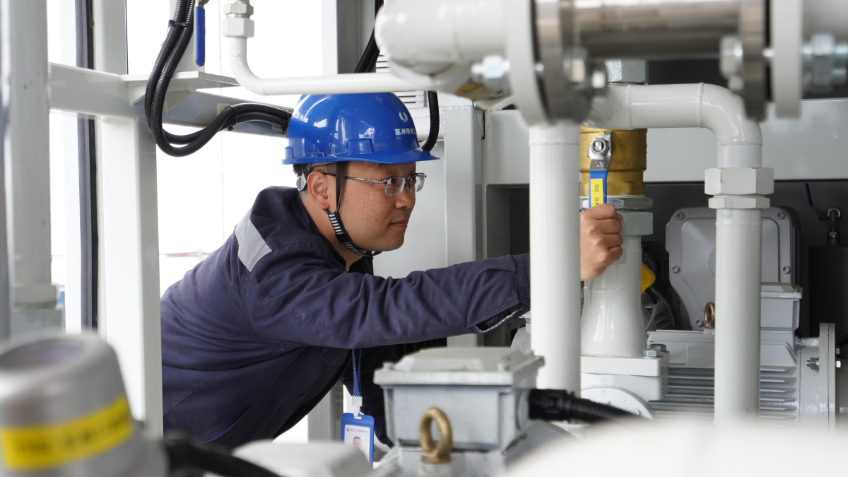 ▲ 檢修人員在檢查濾油機(jī)閥門工作狀態(tài) ?攝影:陳臣