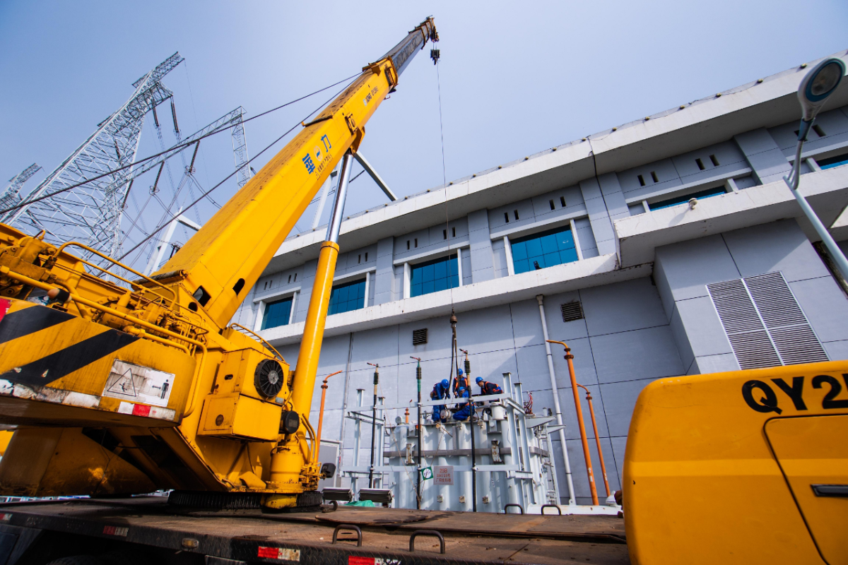 “準(zhǔn)備就緒,起吊!”工作負(fù)責(zé)人羅登利一聲令下,重約5.4噸的變壓器外罩被緩緩吊起,繞組、鐵心等核心部件逐一顯露在晨光中。