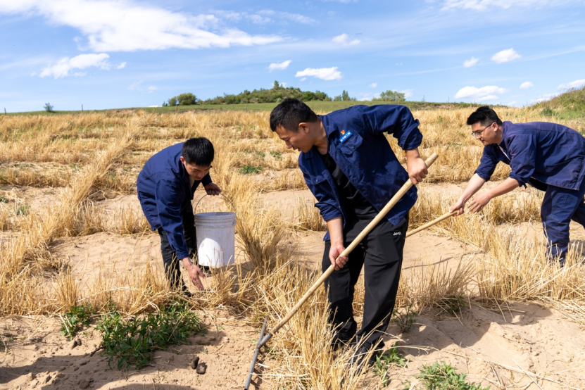 ▲ 工作人員在克什克騰旗沙地開展作業(yè)(2025年6月攝)攝影:陳磊
