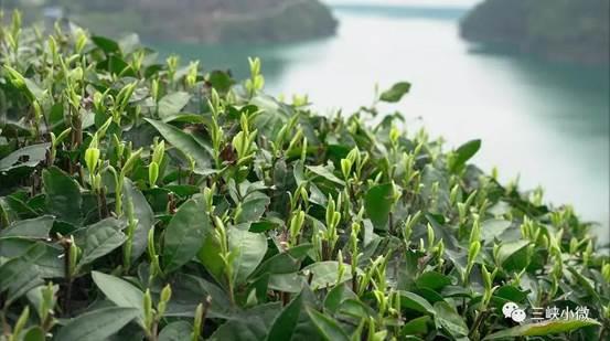 高橋村茶園里剛發(fā)出嫩芽的茶葉映襯著美麗的清江
