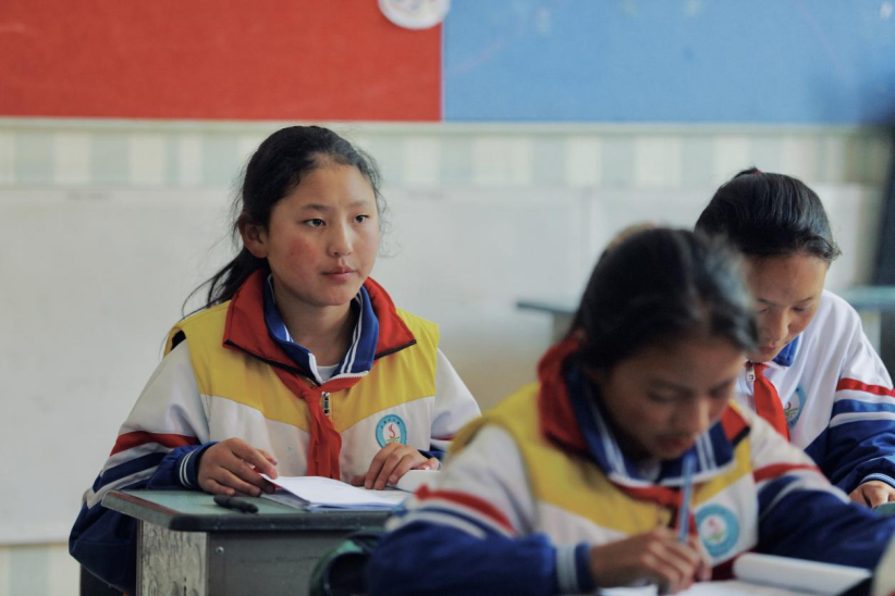 沙貢鄉(xiāng)小學(xué)的洛松曲珍剛剛度過了一個難忘的暑假,即將小學(xué)畢業(yè)的她在課堂上格外用功。