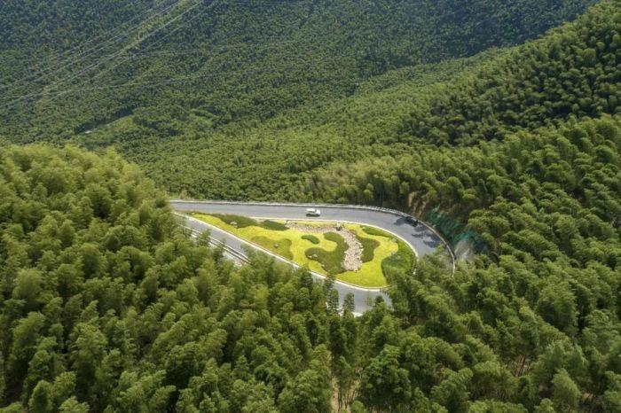 乘車穿行在上下水庫(kù)之間,我們可以看到明線道路每個(gè)回頭彎都經(jīng)過(guò)了精心設(shè)計(jì),樹(shù)木、草地、景觀石等元素巧妙搭配,每一處都是一個(gè)個(gè)性十足的小公園,滿眼綠色觸手可及;每一條隧道盡頭都是不一樣的景致,奇山怪石一一呈現(xiàn)。
