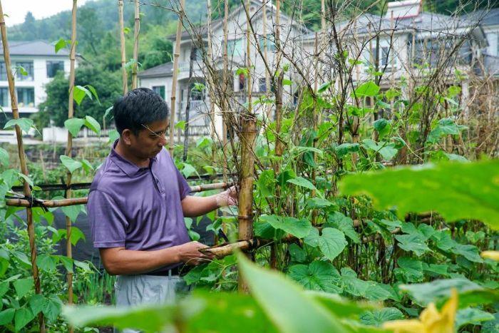 “來(lái)嘗嘗我自己種的黃瓜,沒(méi)有用過(guò)一點(diǎn)化肥的?!贝迕窀叱少t一邊打理著家門(mén)前的小菜園,一邊介紹著。每當(dāng)看見(jiàn)長(zhǎng)龍山電站的建設(shè)者從門(mén)前走過(guò),高成賢總會(huì)和他們熱情地打個(gè)招呼聊聊天,就像相處多年的老鄰居。