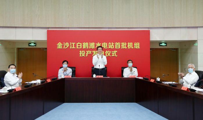 中共中央政治局常委、國務(wù)院副總理韓正在北京主會場出席儀式,并宣布白鶴灘水電站首批機組正式投產(chǎn)發(fā)電。全國政協(xié)副主席、國家發(fā)展改革委主任何立峰宣讀了習(xí)近平的賀信和李克強的批示。