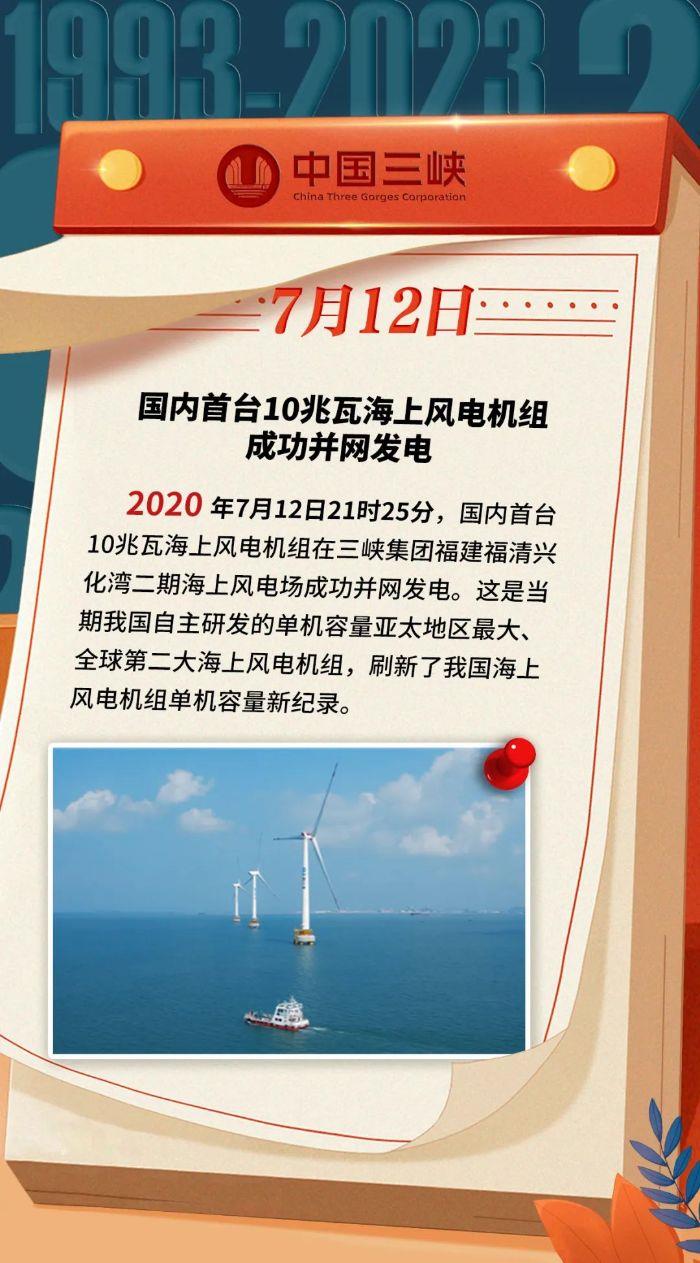 三峽 · 歷史上的今天 | 國(guó)內(nèi)首臺(tái)10兆瓦海上風(fēng)電機(jī)組成功并網(wǎng)發(fā)電(7月10日-7月16日)