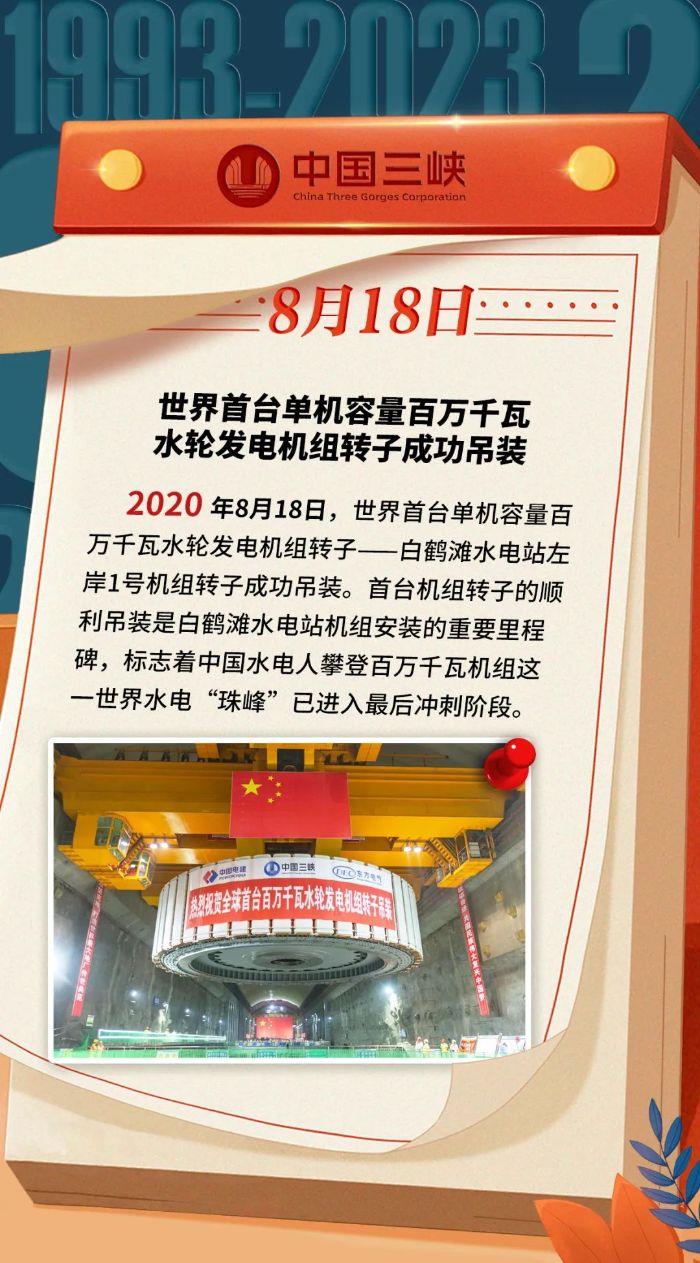 三峽 · 歷史上的今天丨世界首臺(tái)單機(jī)容量百萬千瓦水輪發(fā)電機(jī)組轉(zhuǎn)子成功吊裝(8月14日-8月20日)