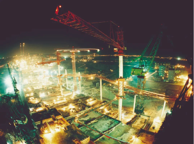 ▲?1999年除夕夜,三峽工程施工現(xiàn)場(chǎng)燈火通明,奮戰(zhàn)正酣。(資料圖片)