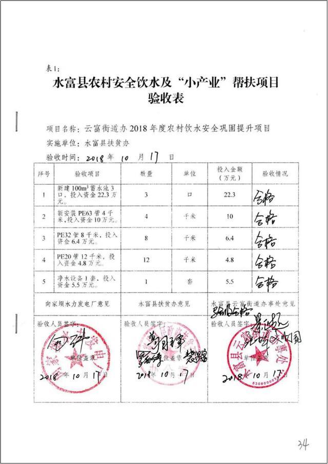 水富縣農(nóng)村安全飲水幫扶項(xiàng)目驗(yàn)收表