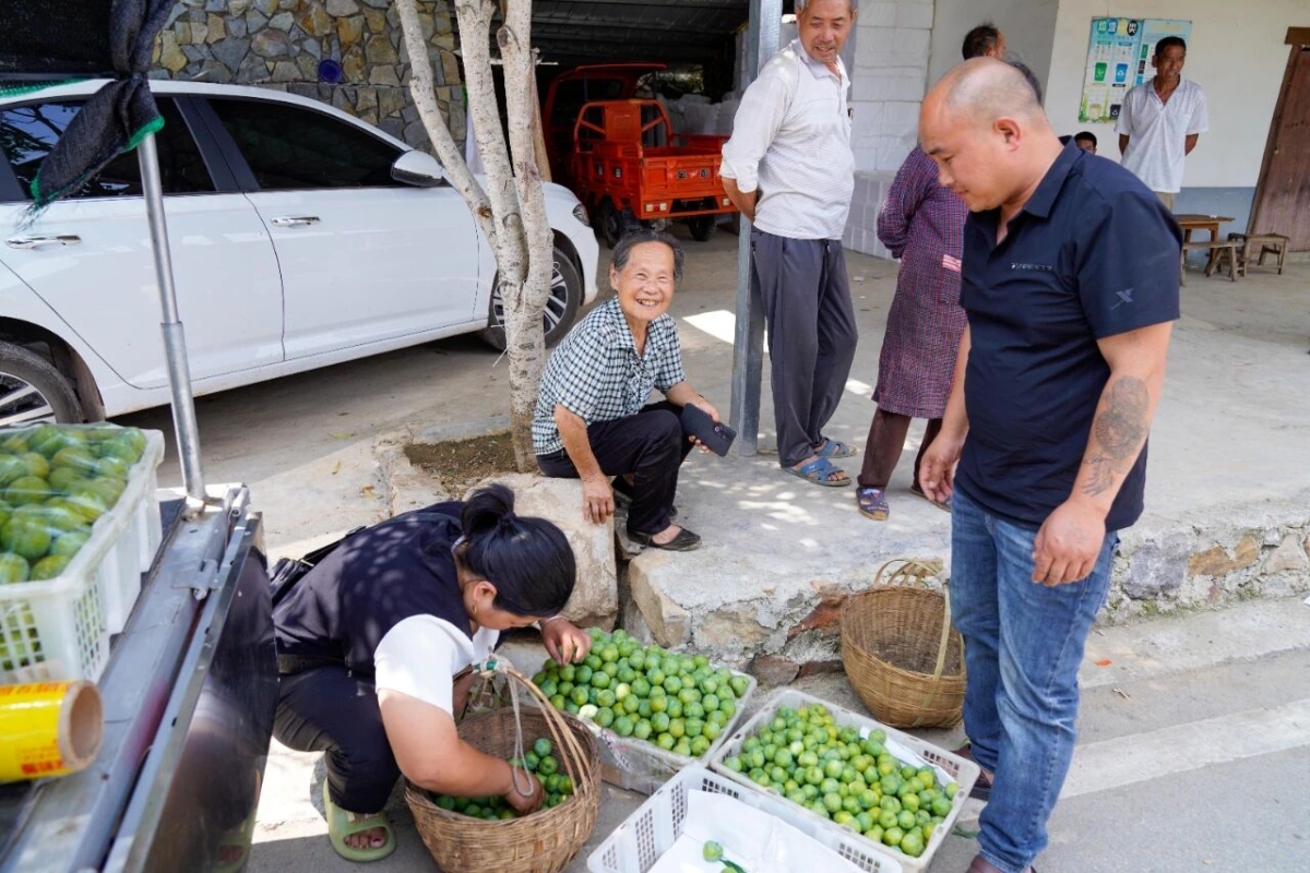 ▲?在權(quán)發(fā)村,隨處可見脆李交易的熱鬧畫面