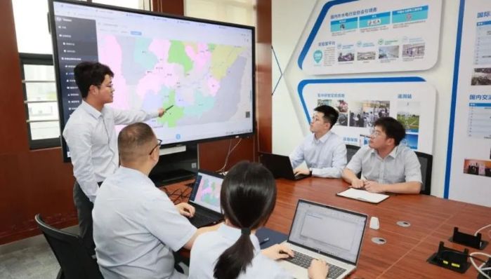 ▲ 三峽梯調(diào)水資源高效利用研究所正在進(jìn)行會(huì)商討論 長(zhǎng)江電力供圖