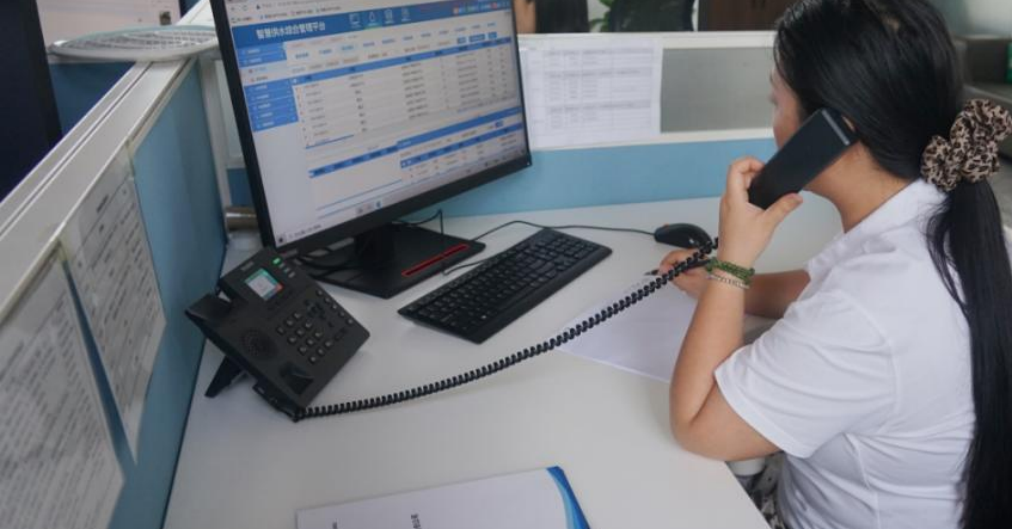 叮鈴鈴,調(diào)控中心電話鈴聲響起。三聲內(nèi),客服人員劉茜迅速接起:“您好,這里是水管家熱線,請講?!狈畔码娫挘瑒④鐚⑿畔⑸蟼飨到y(tǒng)并進(jìn)行分發(fā)派單,“用戶反饋家中水壓低,已反饋東新城營業(yè)所處理。”