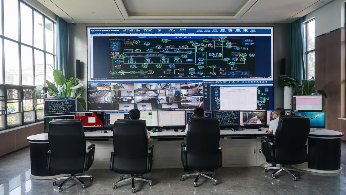 2019年以來,“一個城市,一個管家”——致力于系統(tǒng)長效解決城市水環(huán)境問題的三峽方案在六安落地生根?!?/span>廠網(wǎng)河一體”“供排澇一體”,一張數(shù)字大屏即可監(jiān)測調(diào)控城區(qū)所有涉水設(shè)施,包括27個泵站、7個水質(zhì)凈化廠、4座供水廠、5個調(diào)蓄池、1座中水廠、1座污泥處理中心,以及4000多公里供排水管網(wǎng)等。